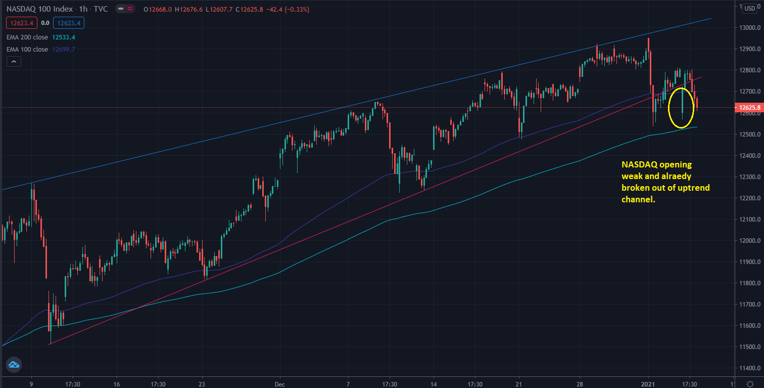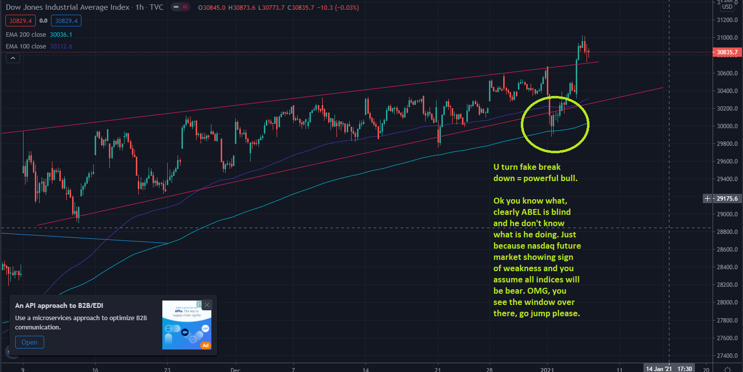It all began on the 6th of Jan, When the NASDAQ future markets drop -2%. Remember RUSSELL earlier FIRST to end the uptrend channel, now is Nasdaq turn. My Bear bias is heavily ON now! You see a lot of blind spot I ignored and base on this 2 points I have and Full bear mode on that fateful day. OMG, LOOK AT ALL THE BLIND SPOT I IGNORE OR MISSED. Think I will give up for now, Clearly my execution is very bad.infinite money supply, they can easily pump back up the market like the RUSSELL 2000. I am obsolete and things not like in the past, the contraction of credit or money supply.
