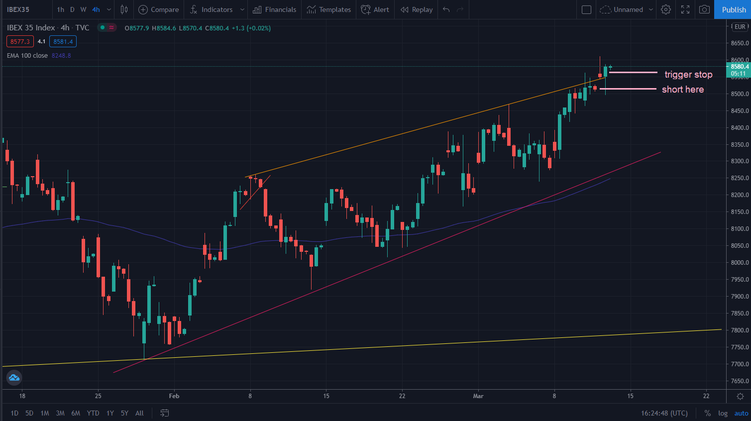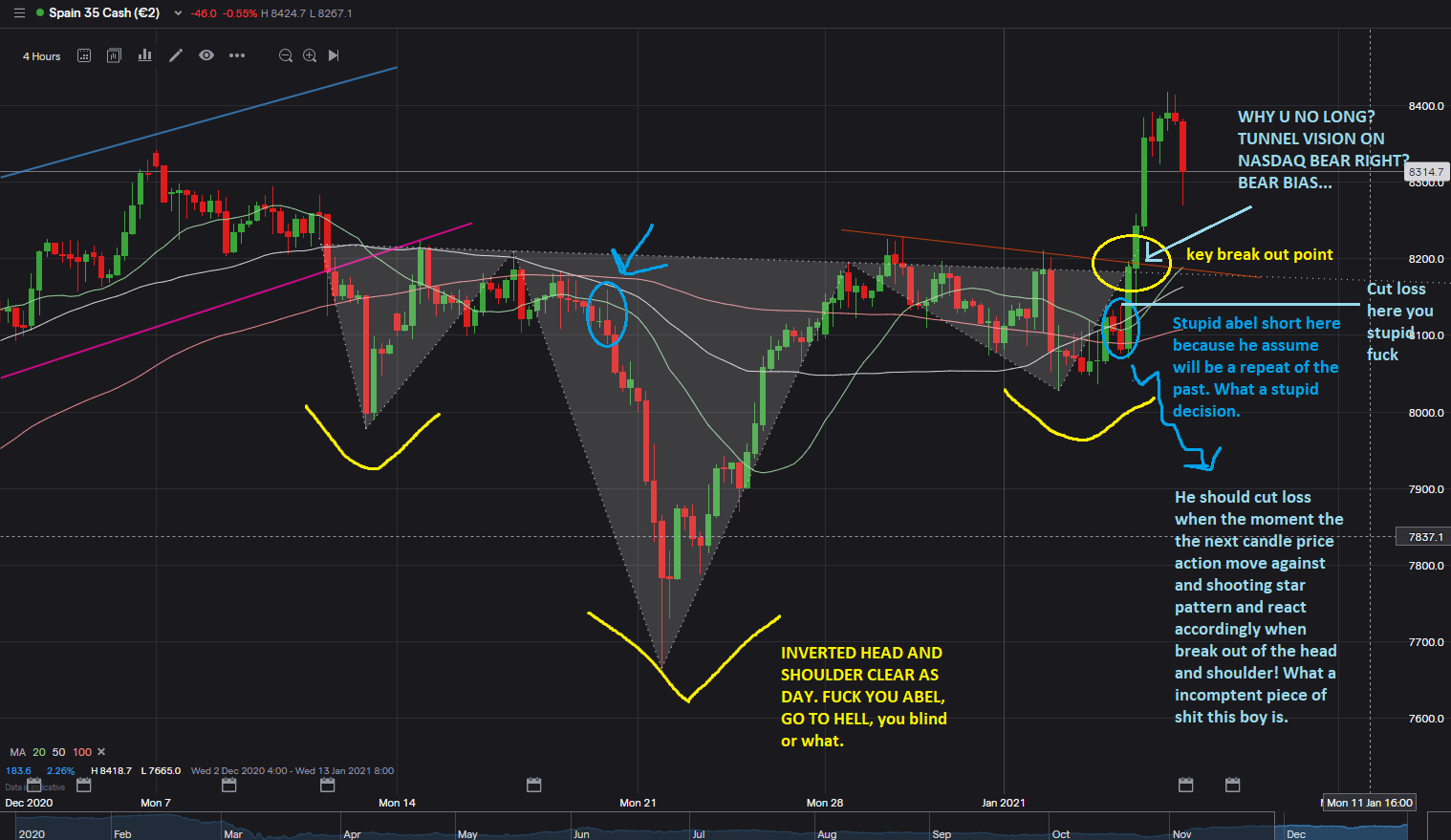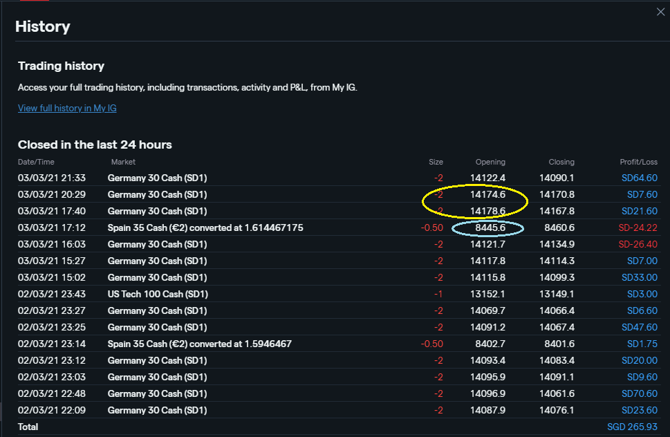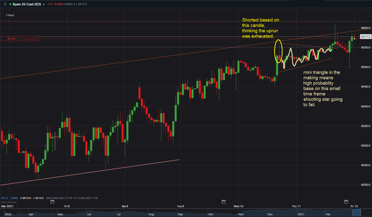 I was talking to my new friend about Dax trading setupThe significant of DAILY time frame. IG future market chartWasn’t a prefect trade, I am thinking US might Open Strong and worry I will get whip. So I decided to reposition for later. Look at the yellow circle, I shorted at the peak. Ibex got whipped out, very wasted. I am bad at profit taking, look at the potential gain.