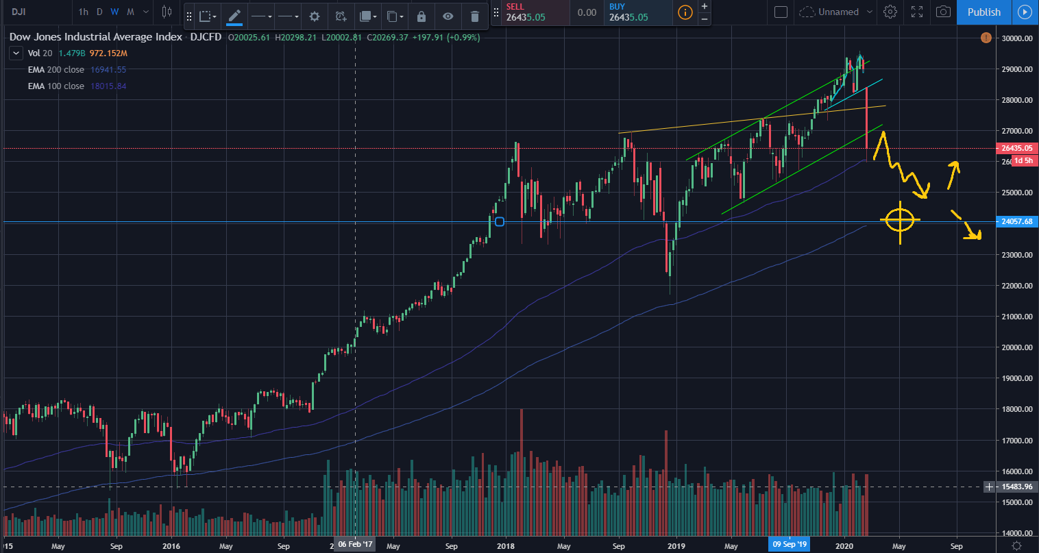 Technical analysis early warning system some short opportunity. My precious post on Dow Jones said that if U turn back to channel could be a bearish Feb. There you go. Target 24000 level if weekly uptrend still hold. If broke 24000 and can’t backup. Officially it be on bear market.